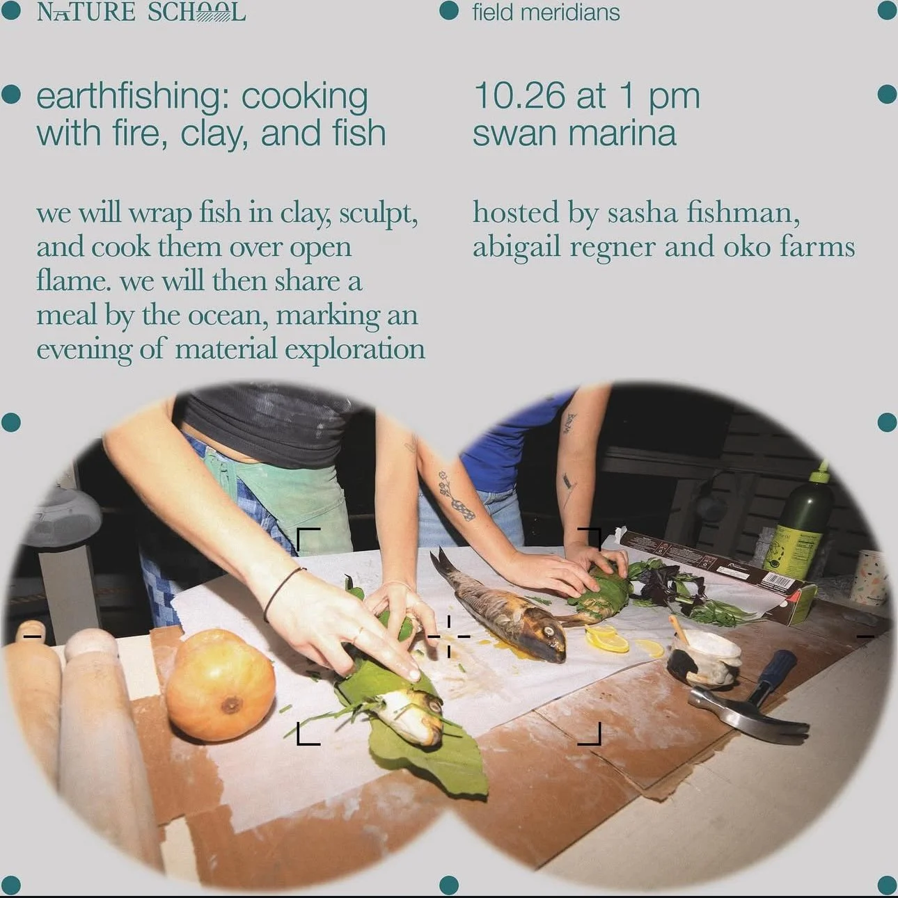 Join us for the second iteration of Earthfishing, a workshop in collaboration with sculptor and researcher Sasha Fishman, ceramicist Abby Regner, and Oko Farms. Together, we will wrap fish (harvested from Oko’s aquaponics system) in clay, sculpt them, and cook them over open flame. We will then share a meal by the ocean, marking an evening of material exploration, connection with the surrounding waters of New York, and a ceremonial honoring of the fish as they transition into a new form.